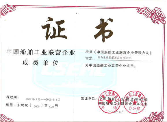 中国船舶工业联营企业成员单位 “橡胶发泡护舷”专利证书